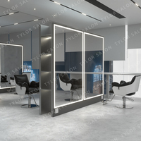 Modern LED Light Barbershop Salon Mirror Station Double Side Wood Luxury Salon Beauty Mirror Station